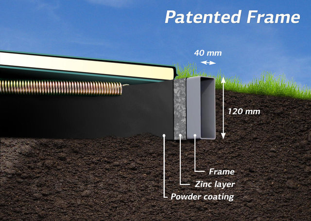 - Die Höhe des Vierkant-Rahmens sorgt dafür, dass der Boden an den Seiten nicht abrutschen kann und das gegrabene Loch intakt bleibt. Dank der speziellen doppelten Beschichtung der Rohre ist der Rahmen ausgesprochen korrosionsbeständig. Die Rohre wurden zunächst mit einer dicken Zink Schicht versiegelt und anschließend mit einer attraktiven schwarzen Pulverbeschichtung versehen.