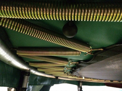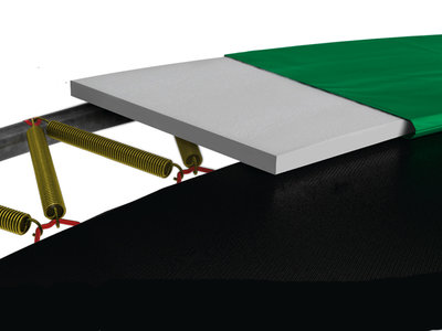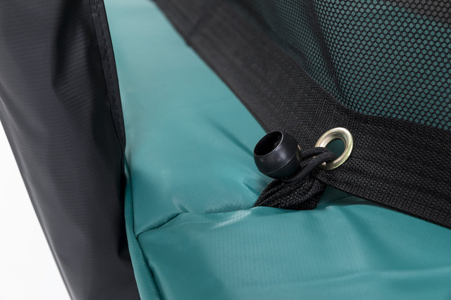 Die Federn werden mittels 8-fach-vernähten Dreiecksösen an der Sprungmatte befestigt. Damit wird das Trampolin solider, sicherer und langlebig.
