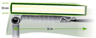 Durch die diagonale Anordnung verfu¨gen diese BERG Trampoline über 30 % mehr Federn als normal. Die Federn und der Federnweg sind länger, wodurch mehr Kraft aufgebaut wird und das Springen noch einfacher wird. Die TwinSpring Gold-Federn sind speziell durch BERG entwickelt. Die goldfarbene rostabweisende Schutzschicht sorgt für eine lange Lebensdauer.