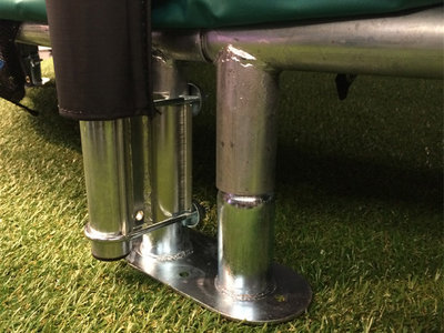 Damit Sie schnell in den Genuss dieses Sprungerlebnisses kommen, hat BERG zudem eine spezielle Rahmenkonstruktion für einfache und sichere Installation entwickelt: Der Oberrand ruht auf besonderen, extra-langen Füßen, die mit den beiliegenden Grundankern fest im Untergrund fixiert werden.